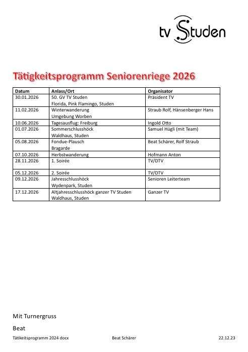Tätigkeitsprogramm TV Studen ¦ Allgemein