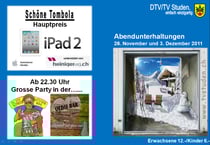 Für die zweite Vorstellung vom kommenden Samstag, den 3. Dezember 2011 steht erneut ein Abendessen ab 18.15 Uhr sowie ein Ipad in der Tombola bereit. Ab 20.00 Uhr beginnt die Vorstellung.