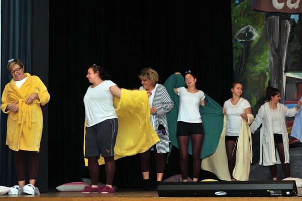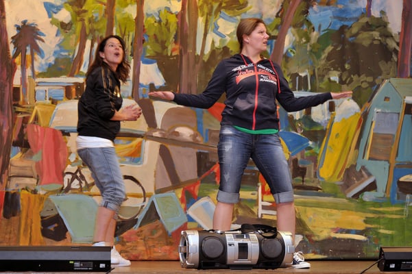 Nachdem die beiden Hauptproben sehr gut verlaufen sind, freuen wir uns auf den ersten Auftritt heute Abend. Die Darbietungen der Riegen sind sehr vielseitig, das Theater spannend und witzig.