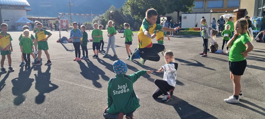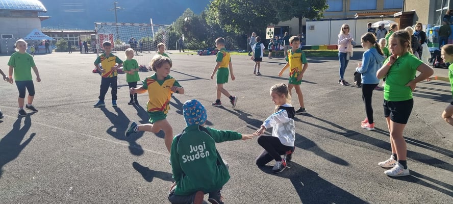 Am frühen Samstagmorgen, 18. September 2021, besammelten sich die Mädchenriege und die Jugi US vor der Turnhalle in Studen. In privaten Autos fuhren wir nach Frutigen um am Oberländischen Jugendturntag teilzunehmen. Bei schönstem Herbstwetter turnten wir unsere 4 Disziplinen (Ballstafette, Fussball Parcours, Hoch-Weitsprung und Kugelstossen)! Die Kinder turnten mit viel Freude und es resultierten tolle Ergebnisse! Am Mittag nahmen wir dann auch noch spontan an der Pendelstaffete teil, wo mir um Haaresbreite einen Podestplatz verpassten!