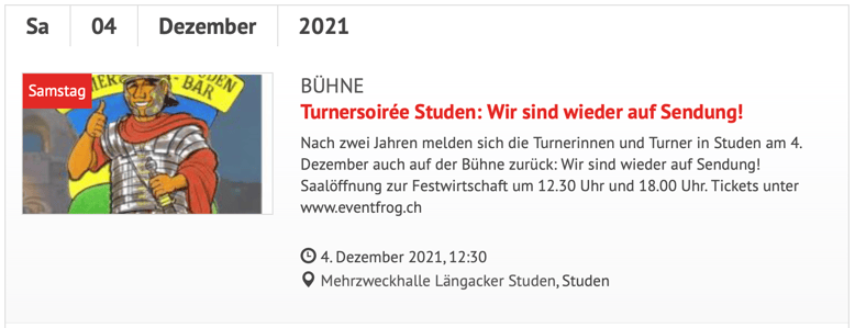 Ab sofort dürfen wir im Bieler Tagblatt unter der Rubrik Agenda noch ein wenig Werbung für unsere zwei bevorstehenden Turnervorführungen publizieren.
