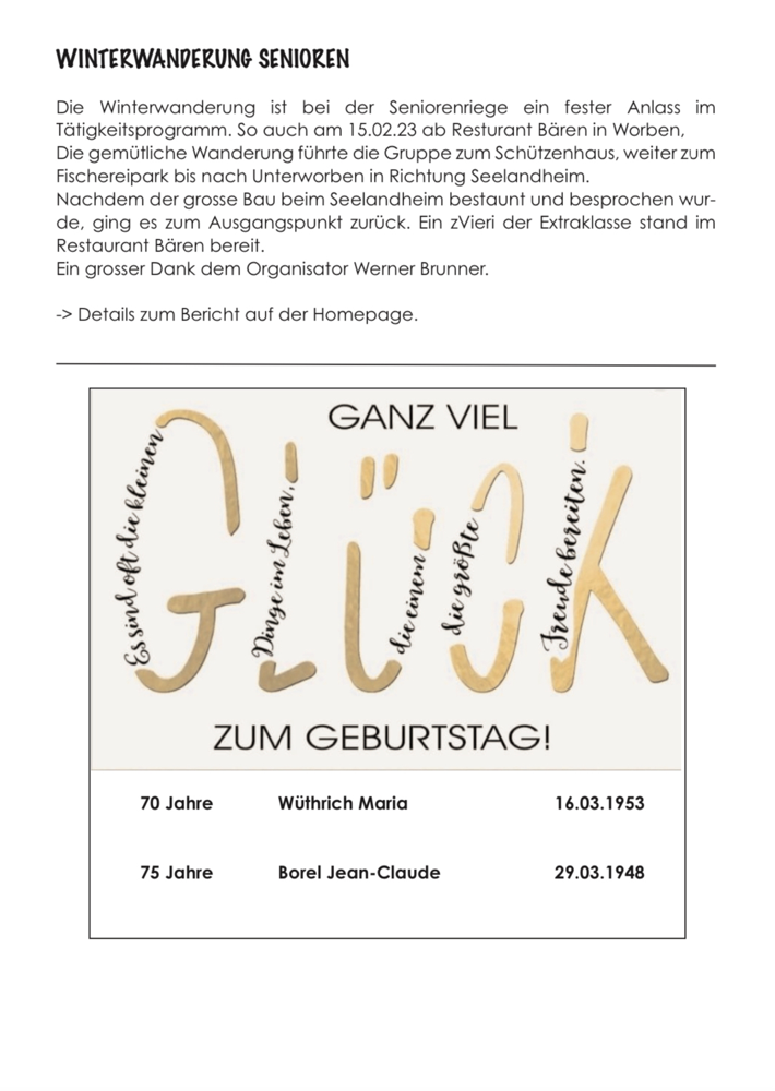 Nach 36 Jahren erschien im November 2022 die letzte Ausgabe der Vereinspost, welche ab 2023 durch den Vereinsblitz - einer angepassten, elektronischen und zeitgemässeren Version ersetzt wird.
